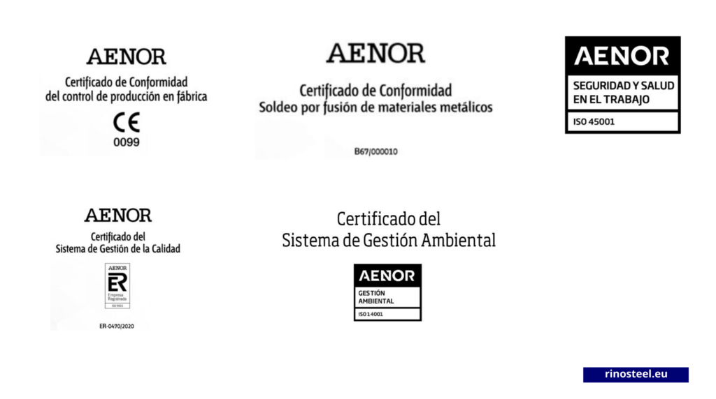 Puedes consultar todas nuestras certificaciones aquí CALIDAD RINOSTEEL.